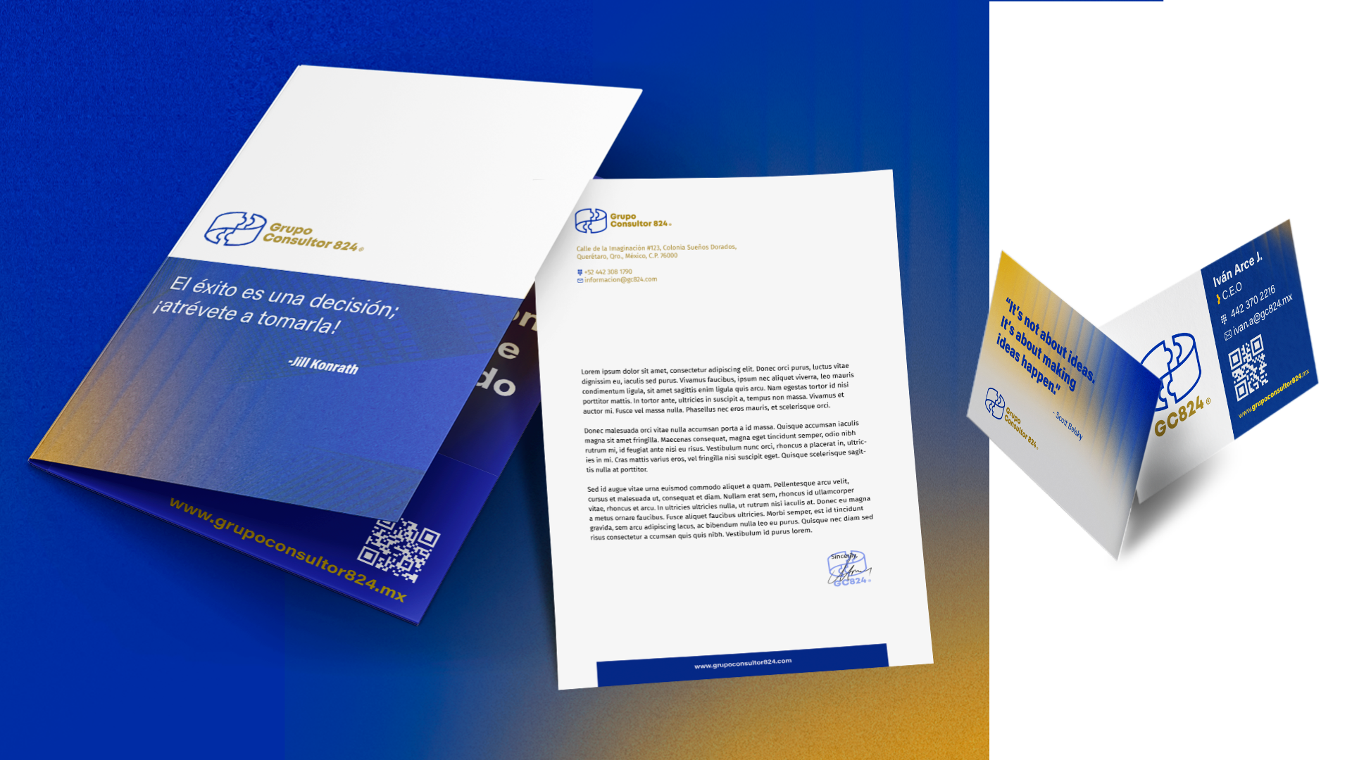 En el rubro financiero, Grupo Consultor 824 busca ser una alternativa confiable en la que el cliente sienta que está en las mejores manos. Profesional, cercana y alta fiabilidad; son algunos de los valores con los que quiere se buscó relacionar la marca.